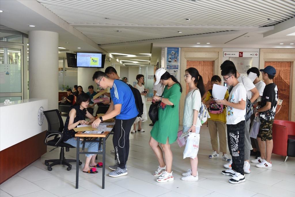 迎新墙前同学们许下心愿,形成一道靓丽的风景线
