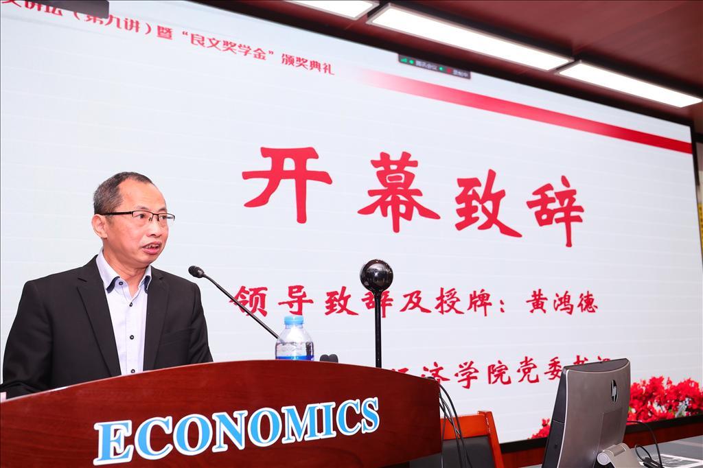 bat365官网登录入口党委书记黄鸿德首先致辞。黄鸿德书记代表经济学科对本次讲坛和颁奖典礼的召开表示热烈的祝贺,并介绍了黄良文教授对bat365官网登录入口经济学科以及其在统计学、经济学等方面作出的卓越贡献,表达了对黄良文教授的崇高敬意。此外,黄鸿德书记还简要回顾了统计学科的发展历史,并对未来“双一流”学科建设方面作出展望。