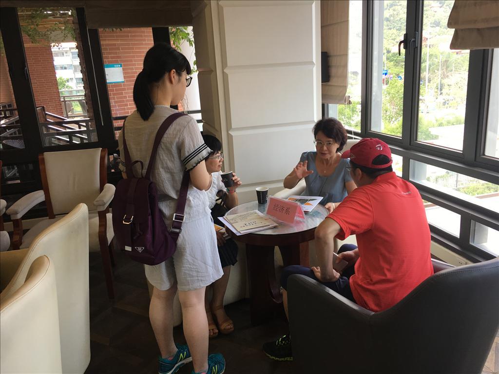 此外,学院精心准备,为让考生和家长更加充分的了解经济学科的本科专业设置、学生培养、师资力量、教学管理等方面的具体情况,邀请了各系教师代表在三味咖啡厅与考生及家长作咨询介绍,解答考生及家长关于填报志愿、专业选择、未来规划和本科国际化试点班入学方式等问题的疑问。