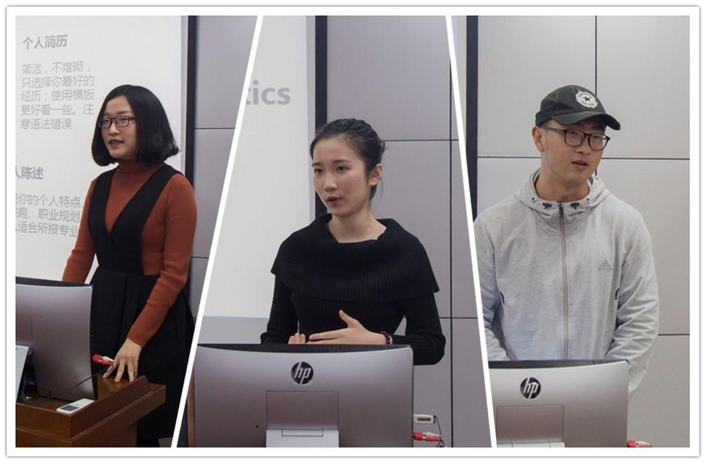 3月12日,应届毕业生陆欣怡、樊金麟和王婧颖为拔尖计划班的同学们作保研、出国经验交流,介绍升学申请等经历。