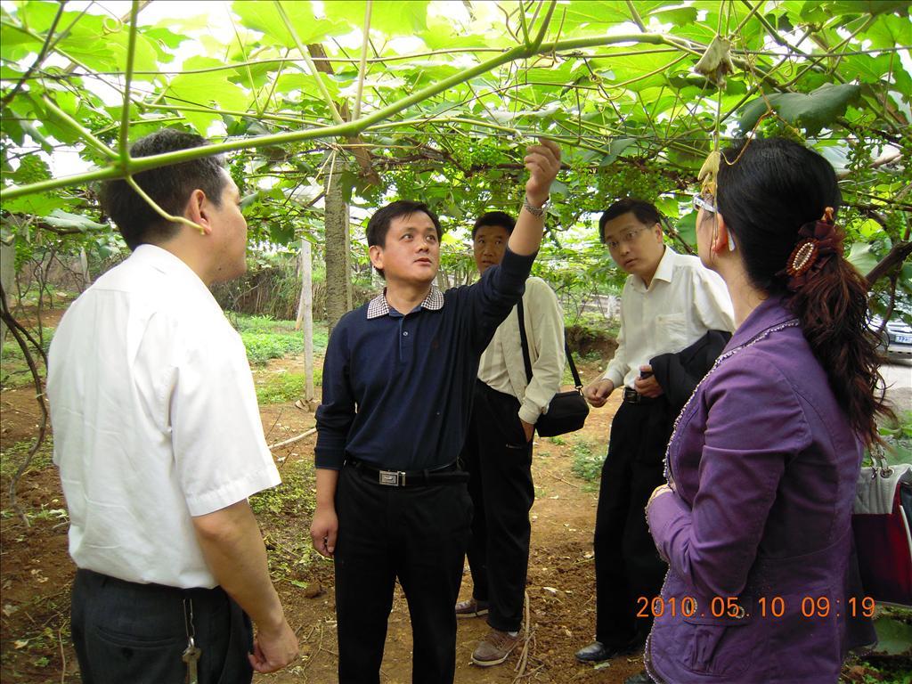 刘奇凡(左二)在贵州省黔南布依族苗族自治州三都水族自治县交梨乡,与基层干部现场调研如何通过发展葡萄种植,拓宽农民增收渠道