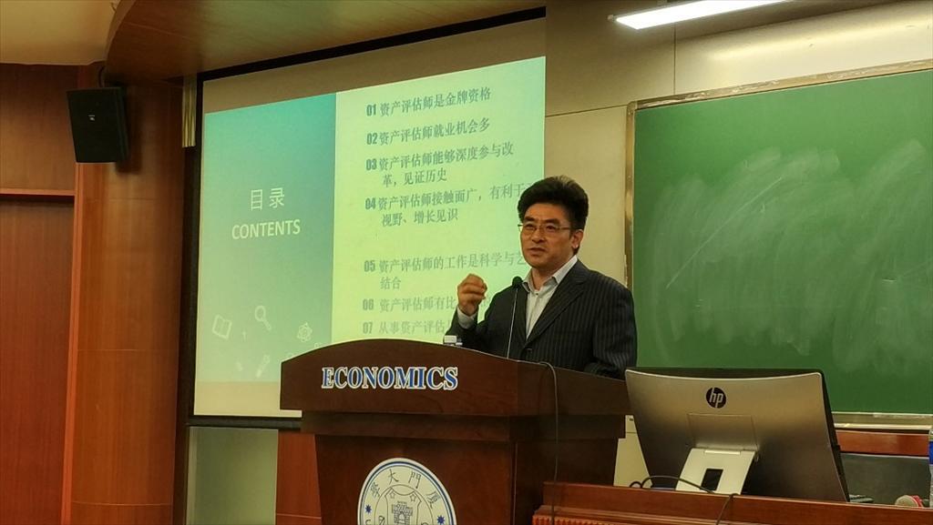 学术讲座之后,杨松堂做了题为“报考资产评估师的八大理由”的职业宣讲。从资产评估师的金牌资格地位、较大的人才缺口、参与见证重大改革历史事件的机会、极其广阔的工作接触面、科学与艺术相结合的工作体验、可观的薪酬收入、无天花板的工作前景,到国家对评估行业的高度重视等方面,均吸引着众多学生报考资产评估师,投身到资产评估行业中来。