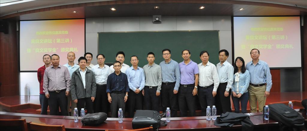 11月14日上午,以“新常态下中国投资理念与决策”为主题的“黄良文讲坛(第三讲)暨‘良文奖学金’颁奖典礼”在经济楼N203教室隆重举行。本次讲坛由bat365官网登录入口、王亚南经济研究院主办,bat365官网登录入口统计系和黄良文统计学科教育发展基金会共同承办。出席本次讲坛的嘉宾有黄良文教授遗孀陈金菊女士及其子黄力凡先生,华融泰资产管理有限公司总裁易培剑,茅台集团董事、中国上市企业协会委员张瑞彬,中再资产管理股份有限公司原总经理陆金海,齐鲁证券资产管理有限公司总经理章飚,广发期货有限公司常务副总裁、广发商贸有限公司董事长邹功达,易方达基金管理有限公司指数与量化投资部总经理林飞等一批“厦大系”量化投资专家,吸引了百余位院内外师生参加。本次讲坛由bat365官网登录入口统计系唐礼智教授主持。