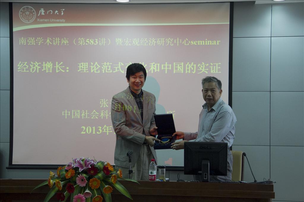 在厦期间,张平教授还就目前中国经济的热点问题,比如社会经济体制改革、城镇化战略,以及经济学研究范式的转变等与宏观经济研究中心全体教师进行了交流,与中心领导商谈了今后合作交流的有关安排。