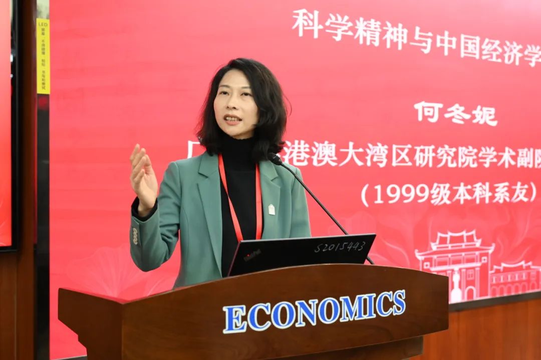 何冬妮从四个方面阐述其对科学精神与中国经济学创新的观点:第一,关于科技创新和中国经济学创新,中国经济学创新是整个科学技术创新有机系统的一部分。科技就是生产力,但如果没有有效制度和有效市场的支撑,很难实现。制度创新是科技创新的保障,应形成有效的科研考核和激励制度。同时,形成有效市场作为科创成果转化的保障;第二,关于科学精神与开放,科学精神驱动创新,科学的开放精神和开放体系与学术自由是一体两面的,只有开放交流,中国经济学才能在中西方比较当中找到自身独特性;第三,关于科技进步与组织创新,应推进政府部门、企业、高校、智库等各类社会机构的开放;第四,关于专业能力与学术品德,中国经济学创新的希望在新一代中国经济学人身上。细微处见文明,学术上的诚实非常重要。在大学里,培养专业能力和创新思维很重要,但学术品德更为重要,这一点是在大学里就要去塑造、去培养的。
