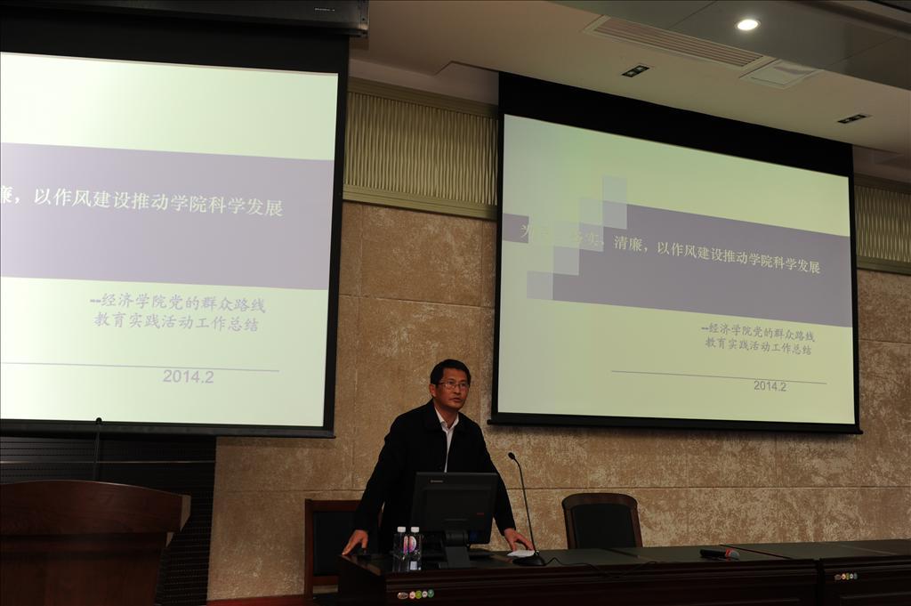 他指出,自2013年7月以来,院党委紧紧围绕保持党的先进性和纯洁性,着眼于自我净化、自我完善、自我革新、自我提高,以“照镜子、正衣冠、洗洗澡、治治病”为总要求,以为民务实清廉为主要内容,在103个党支部和1300余名党员中扎实有效开展党的群众路线教育实践活动。通过进行民主评议,设置意见箱,召开教工座谈会,举办“经院有约”等多种方式广泛征求师生员工对学院领导班子的意见和建议,深入查摆“四风”问题,并据此制定《学院领导班子党的群众路线教育实践活动整改工作方案》,即时解决师生员工反映强烈的突出问题,取得了明显成效。学院党员、干部进一步坚定了理想信念、进一步加深了对党的群众路线的理解和把握、进一步改进了工作作风、进一步办好一些让师生得实惠的实事和好事、学院各项工作也得到进一步推动。