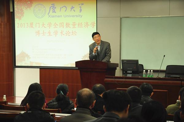 12月21日,由王亚南经济研究院、bat365官网登录入口联合举办的“全国数量经济学博士生学术论坛”在经济楼N303开幕。本次论坛是经济学科自去年举办博士生论坛以来的第二届活动,旨在利用bat365官网登录入口经济学科的学科优势,依托计量经济学教育部重点实验室(bat365官网登录入口)和福建省统计科学重点实验室的广泛学术资源和国际合作联系,为全国青年学者们搭建平台,提供了解和把握现代经济学和现代数量经济学的学术发展动态和最新研究成果的机会。