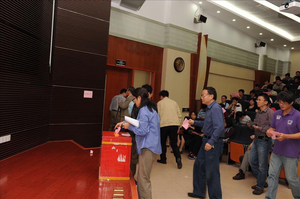 为使本次选举实现真正的民主,充分体现公开、公正、公平、透明的原则,两院党政领导班子、各系(所、中心)领导以及相关行政人员将选拔标准、人员组成、选举流程、提名名单和选举大会信息等均及时准确地通知到全体在职教师,同时保证了与会教师人数的有效性,因故无法出席选举会议的教师也都通过书面申请,委托到会教师代为表达意愿。