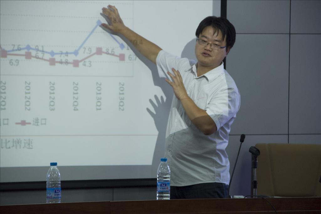 在回顾了2013上半年的经济运行状况后,王燕武博士表示,下半年,虽然世界经济的恢复性增长将有利于缓解中国出口增长持续下降的压力,使中国经济2013年有望实现中央年初制定的7.5%的增长目标,但是,经济结构失衡的局面却可能进一步加剧。此外,王燕武博士还报告了以规范政府收入行为、控制政府(财政)收入占GDP比重的宏观经济效应问题进行政策模拟,发现降低非税收入比重并将减少的部分转移到实体经济部门,不但能够促进经济增长、激活居民消费、缩小产能过剩,甚至能够通过经济总量的增长,使政府收入不降反升。在介绍了本次结果预测之外,王燕武博士还结合9月份至今的新数据,对模型预测的数据和实际经济走势进行了比较,探讨了本次预测的得失及其原因,展望了今后工作的改进方向。报告结束后,在场师生展开了热烈的互动和交流,就我国经济的实际走势和模型技术细节等话题进行了探讨。