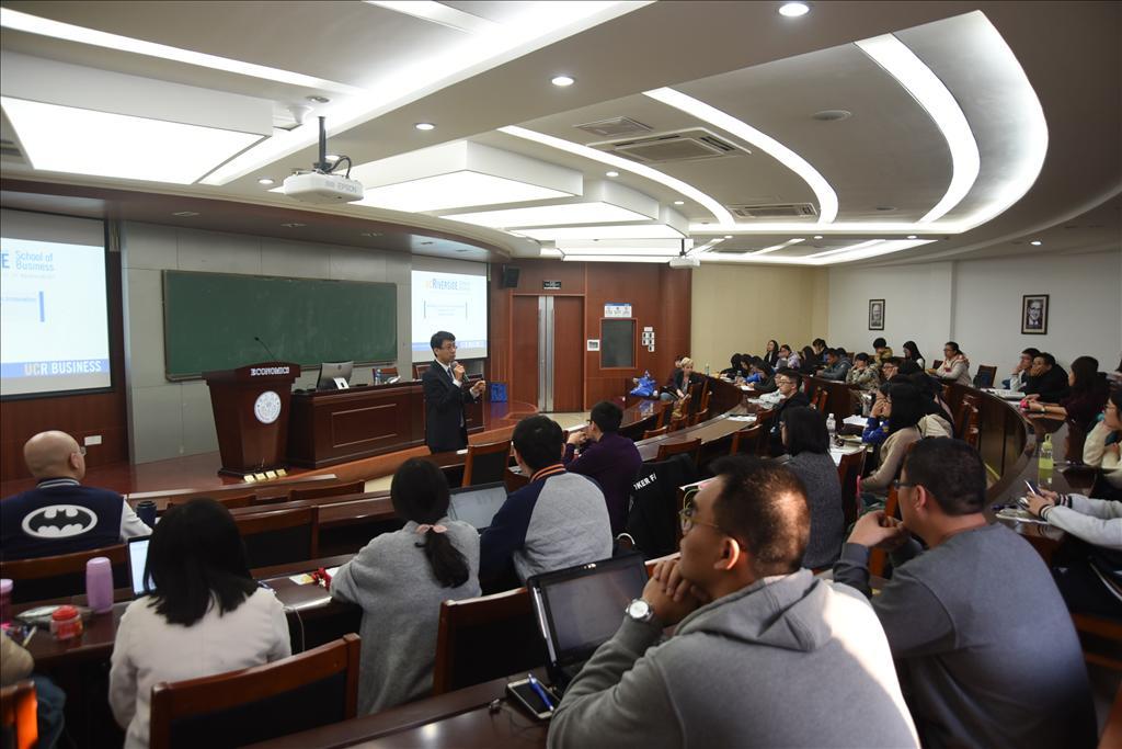 随后,Steve Chen为两院学生带来了一场题为“ Technology Trends for Business Innovation”的讲座,并与同学们分享了自己在美留学与工作的经历。Tamra Johnson介绍了UCR管理学院的概况及硕士项目的一些专业设置、申请流程及学院所提供的各项服务等,帮助同学们更好地了解UCR。两位老师的精彩呈现及专业、亲切、认真的态度给同学们留下了深刻的印象。