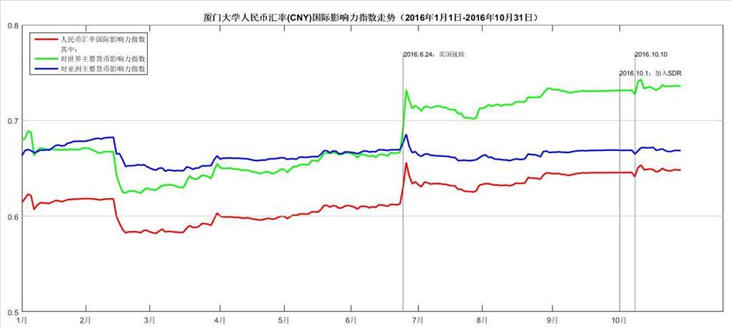 2016年6月6日厦大经济学科首次发布人民币汇率国际影响力指数,就受到了社会各界的广泛关注。7月21日和8月11日又分别新增发布离岸人民币汇率(CNH)国际影响力指数和人民币中间价(CNYMUSD)国际影响力指数,回顾两次重要人民币汇改以来的市场化和国际化历程。该指数是厦大研究团队运用定量分析进行经济系统数据分析的典范,运用现代计量经济学方法与工具,以数据分析为基础实证研究人民币汇率在国际上和亚洲地区的影响力,也可对人民币汇改等政策实施以及英国脱欧等重大国际事件的影响进行了定量评估,增强了经济政策建议的科学性,是建设具有中国特色、高水平的新型经济学智库的有益尝试。