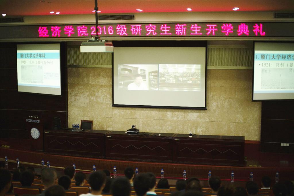 随后,雷根强教授发表致辞。他教导在座的新生们努力成为德、智、体全面发展,对国家、对社会有贡献的人才。雷书记也向大家提出三点建议,一要适应厦大经济学科课改要求,熟悉了解学院的各种规章制度,希望全体同学参与、支持学院的改革。二要学会跟导师沟通相处。三要有好的心态,经得起挫折,扛得住压力。