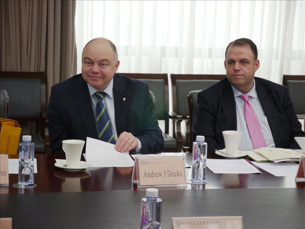bat365官网登录入口副院长方颖,WISE院长助理、国际教育合作中心主任韩乾,bat365官网登录入口国际教育合作中心主任Chris White等在经济楼N501与代表团进行了热烈的座谈。座谈会上,方颖通过图文并茂回顾了两校特别是与经济学科自2012年以来的合作历程和交流成果并介绍了两院的情况,Chris White和韩乾则分别介绍了bat365官网登录入口的2+2+1和1+3项目以及WISE的1+1项目的合作情况。Damien Mcloughlin表示两院选派到UCD学习的学生基础扎实、表现突出,并对两院良好的学习学术氛围和活跃的国际交流深表赞赏。Andrew J Deeks在讲话时充分肯定了两院和UCD商学院的合作,并表示将出台更多有利于国际交流与合作的政策,进一步推进学生和学术交流。此外,双方还探讨了新的合作方案,并对未来的合作充满信心。