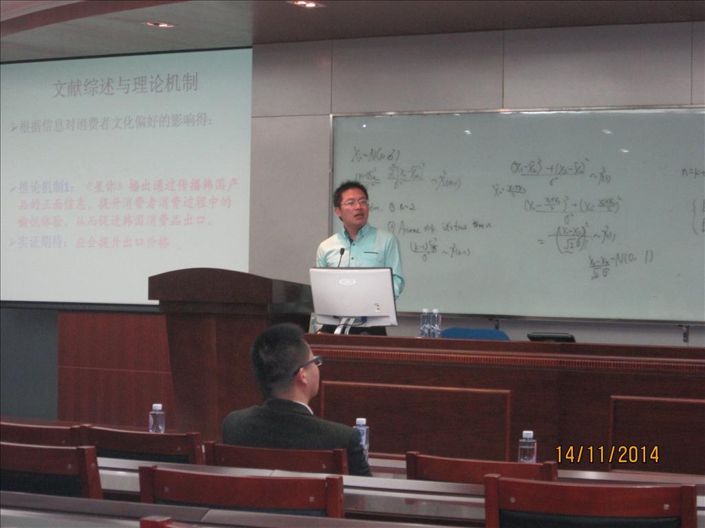 11月14日下午,南开大学国际经济研究所副教授施炳展博士、集美大学财经学院国贸系副主任代中强副教授先后做客国际经贸青年学者论坛第63、64讲,在经济楼N302与经院师生分享了各自的研究成果。讲座由国际经济与贸易系副教授蒋冠宏主持,彭水军教授、杨曦助理教授等众多师生参加了讲座。