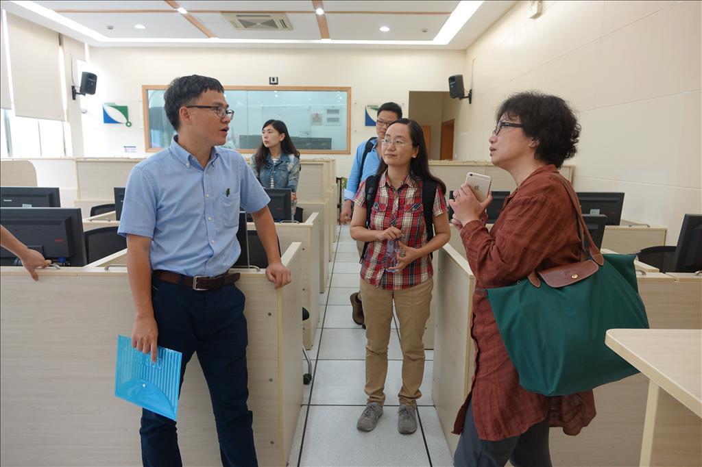 会谈结束后,王云、叶茂亮老师带领客人参观厦大经济学科实验经济金融实验室,并向客人介绍了实验经济学实验在厦大经济学科的开展情况。