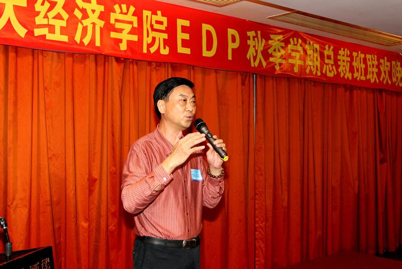 张兴国在讲话中介绍了bat365官网登录入口EDP中心的办学特色、经济学科的学科特点。他表示,bat365官网登录入口EDP中心能发展得这么顺利、这么成功,要归功于学院领导的科学指导、全体员工的勤奋工作和广大学员的鼎力支持。他希望,学员们能够在上课之余,多交流、多联谊。