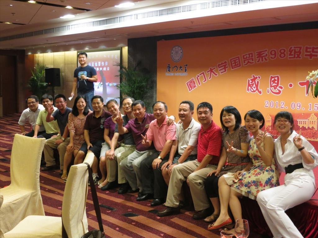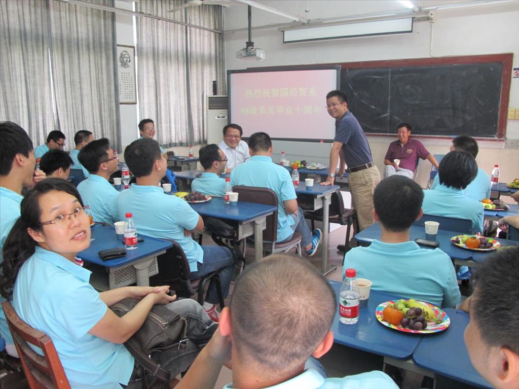 今年适逢我系98级同学毕业十周年,来自海内外的60多名系友重游鹭岛、再聚母系。在以班长刘志滔为首的国贸98级毕业十周年活动筹备小组的精心策划和安排下,9月15日,98级系友回到母校与我系教师座谈,当晚举行“感恩十年”晚会,与我系20多名在职和退休教师联欢。