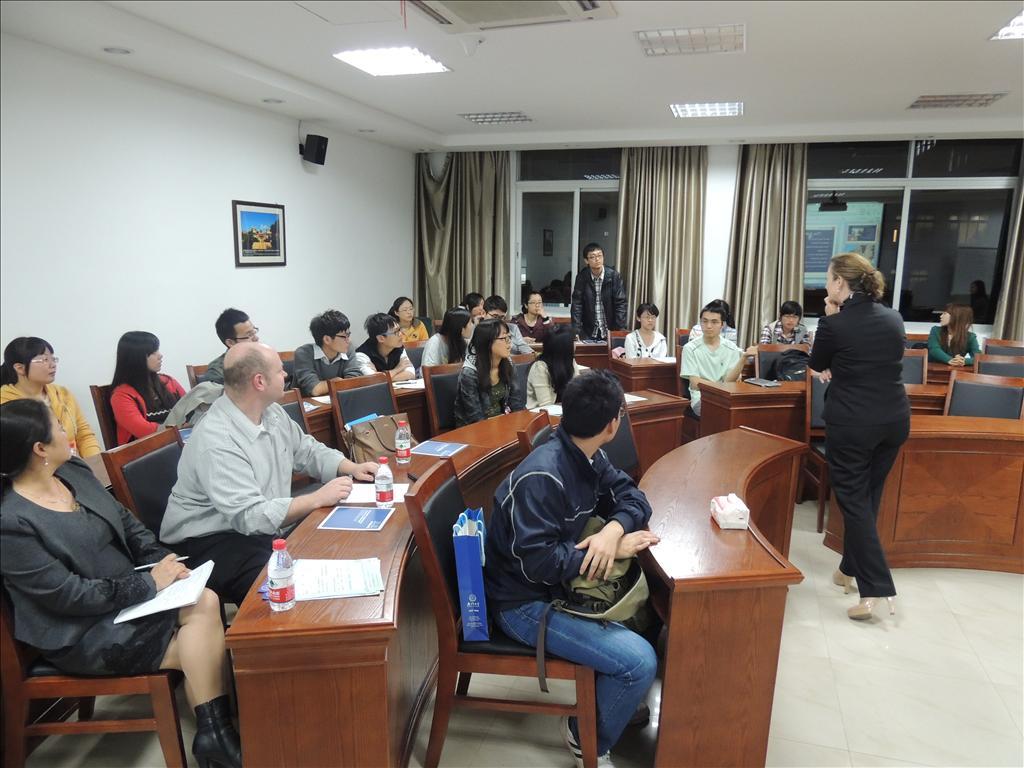 晚上,Leah Hill女士被邀参加经院留学项目宣讲会。她声情并茂地从地理位置、校园活动、学院介绍、学科专业等方面介绍了阿德莱德大学及其商学院并和同学们进行现场互动。不少学生在听过介绍之后都对阿德莱德大学表现出了浓厚的兴趣。
