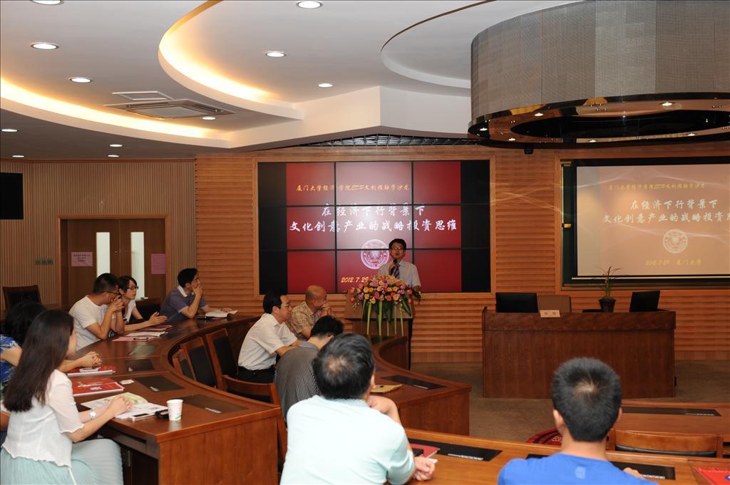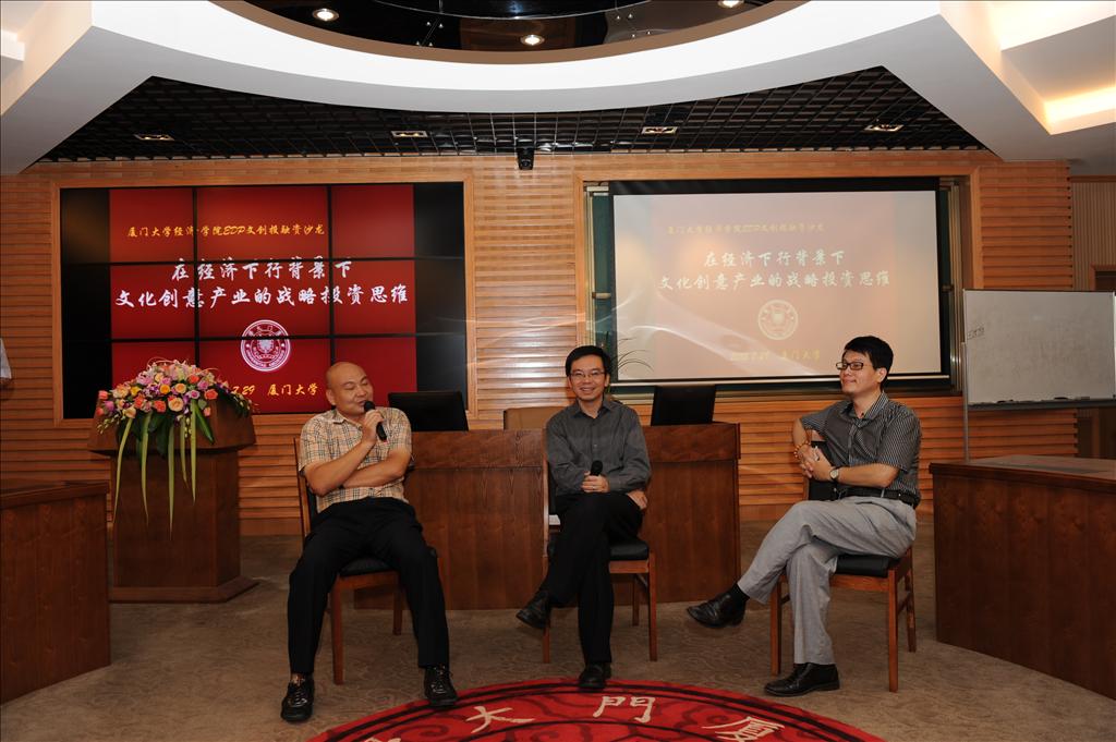 7月29日下午,bat365官网登录入口EDP中心在经济楼C208举办“文创投融资”沙龙活动,厦门文创协会副会长劳莘、厦门龙的传人文化创投基金执行合伙人陈坚、福建源古历史博物馆馆长陈斌等3位嘉宾围绕文创产业的投资思维、产业价值等主题发表演讲。来自厦门市各文创行业的精英以及bat365官网登录入口EDP中心学员应邀参加了本次活动。