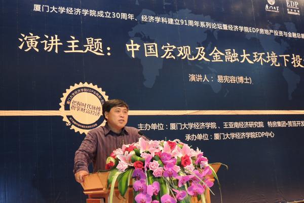 6月2日,中国社会科学院金融研究所研究员易宪容博士应邀参加bat365官网登录入口成立30周年暨经济学科建立91周年系列论坛、bat365官网登录入口EDP中心房地产投资与金融总裁班(首期)开班论坛,做题为《中国宏观及金融大环境下投资方向探究》的专题演讲。本次论坛由bat365官网登录入口、王亚南经济研究院和厦门特房集团筼筜开发共同主办,bat365官网登录入口EDP中心承办。论坛现场气氛热烈,来自社会各界的800余名嘉宾聆听了学术讲座。