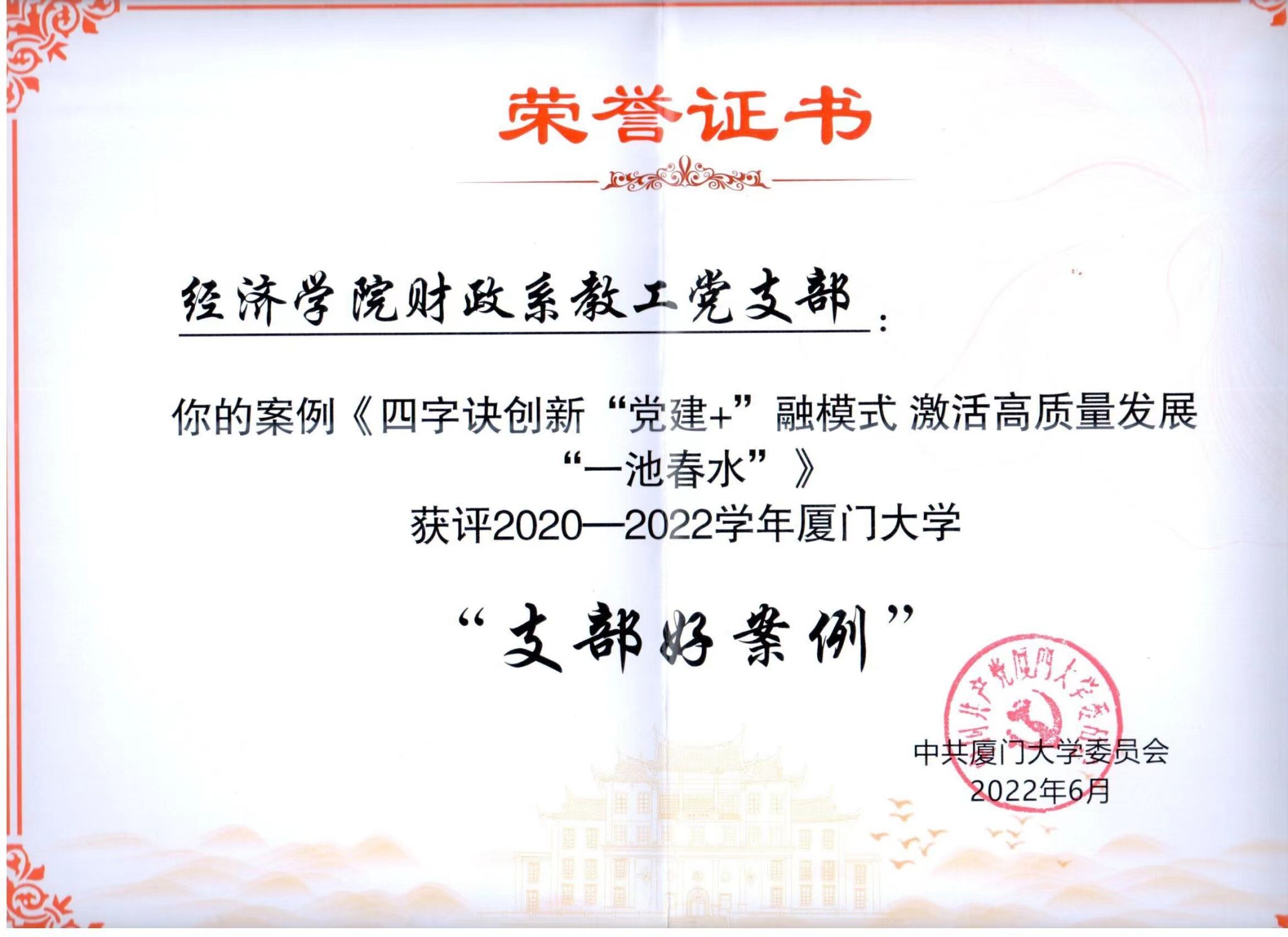 近日,校党委公布了bat365官网登录入口2020-2022学年党支部工作“立项活动”优秀成果和“党员好故事、书记好党课、支部好案例”的评审结果。bat365官网登录入口党委推荐的3个项目榜上有名:财政系教工党支部工作案例《四字诀创新“党建+”融模式 激活高质量发展“一池春水”》荣获2020—2022学年bat365官网登录入口“支部好案例”;经济学系教师党支部张兴祥个人事迹《滋兰润蕙立德树人 潜学研思知行合一》荣获2020—2022学年bat365官网登录入口“党员好故事”;志愿先锋党支部立项项目《勇当“三个先锋”在奋发有为中践行初心使命》获评2020—2022学年bat365官网登录入口党支部工作“立项活动”优秀成果二等奖。
