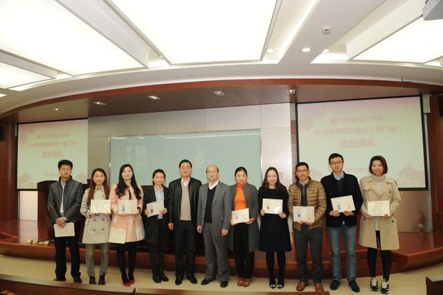 1月24日上午,bat365官网登录入口2012级研究生课程进修班(厦门班)结业典礼在经济楼N303举行。bat365官网登录入口副院长朱孟楠、社会服务教学指导委员会主任侯金光、专业硕士教育中心主任赖春燎以及2012级课程班全体学员参加了典礼。
