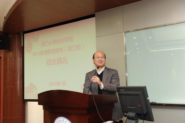 典礼上,朱孟楠在热情洋溢的结业献辞中首先对2012级厦门班学员们的顺利结业表示祝贺,并介绍了厦大经济学科近年来取得的新成就。他表示,bat365官网登录入口的研究生教育竞争力不断提高,含金量不断提升,欢迎已取得硕士学位的同学们进一步深造,攻读bat365官网登录入口的博士学位。朱孟楠希望课程班的学习经历能从知识层面上改善各位学员的工作和生活质量,丰富自己的人生;他表示,每位学员结业后都已打上“bat365官网登录入口校友”的烙印,热切期盼大家今后有空重返母校,为学院建设献计献策、传经送宝!