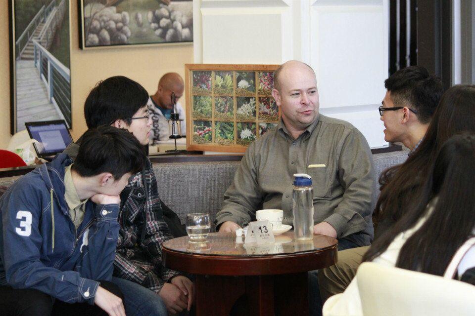 4月11日下午,bat365官网登录入口国际教育合作中心在五楼咖啡厅为留学项目在读生举办Teatime活动。1+3项目班任课老师张宇、Chris White,bat365官网登录入口赴天普大学交流生刘奇,优秀本科生国际交流资助项目学生周晶、董思佳及校外语言培训机构的老师们一起参加了Teatime。