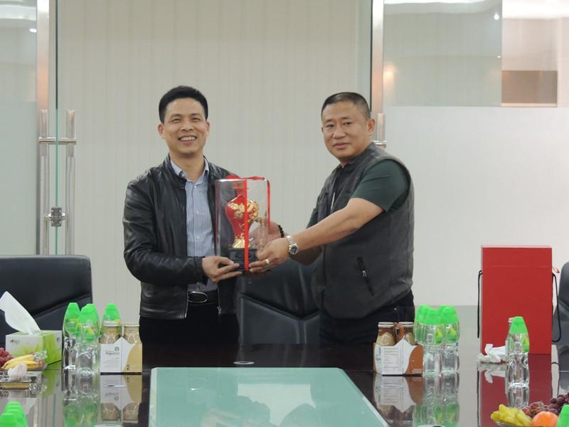 一天的企业参访落幕,陈启明班长代表全班同学向参访企业同学赠送漆线雕以作留念。同窗企业之间的参访,不仅可以交流经营管理之道,更可以在大家的集思广益和思维碰撞中,去帮助企业解决发展过程中遇到的瓶颈问题,为未来进一步的相互合作奠定基础。