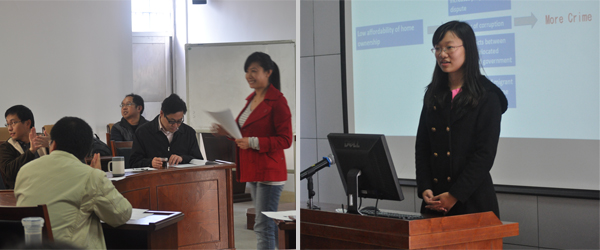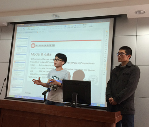 1月4日下午,由王亚南经济研究院(WISE)为WISE-SOE经济学本科国际化试点班(以下简称“国际班”)同学举办的专属学术研讨会在经济楼A501举行。这是国际班自2011年创办以来,首次为班级同学举行的专属学术研讨会,主要由班级同学就自己正在研究的学术课题进行展示,内容包括课题内容、灵感来源、已有文献、研究思路、研究方法和存在的缺陷或问题,议题涵盖教育、污染、房地产、犯罪等生活各个领域的经济学问题。