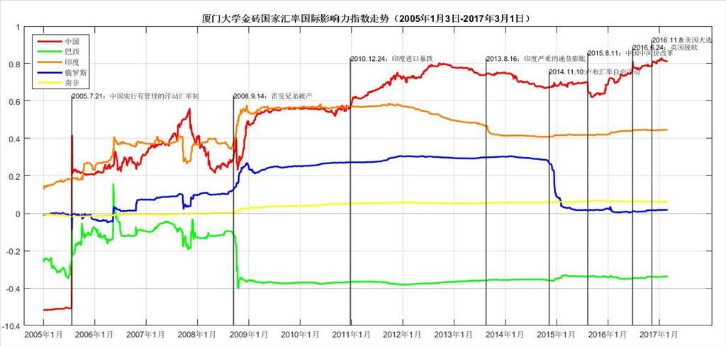2017年的金砖国家峰会将于9月3-5日在中国厦门举行,这是新兴市场和发展中大国的重要合作平台,此次厦门峰会的主题是“深化金砖伙伴关系,开辟更加光明未来”。近年来,金砖国家在不同程度上都面对着严峻的国内国际形势,经济金融的挑战也各有不同,作为一个国家对外经济金融综合指标的汇率在国际上影响又如何呢?
