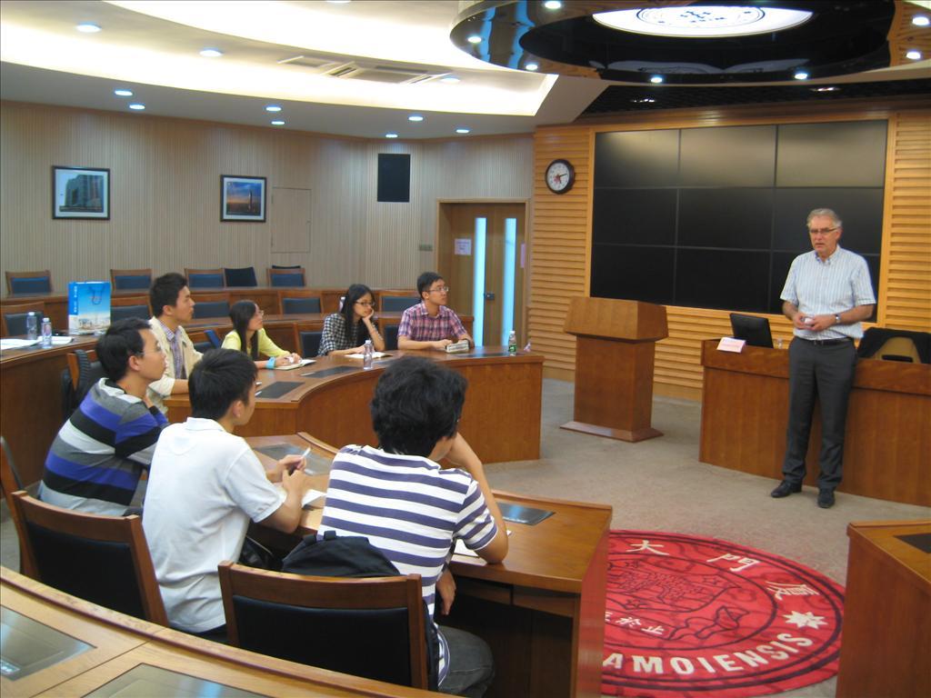 会后,Findlay教授会见了2013级bat365官网登录入口及王亚南经济研究院留学项目、bat365官网登录入口优秀本科生国际交流项目学生。Findlay教授向学生们介绍了阿德莱德大学的校园环境及交通条件,重点说明了该校的课程设置和教学方法并对学生出国后的学习生活进行指导。现场气氛活跃,不少学生就各自所关心的话题和教授进行互动交流。