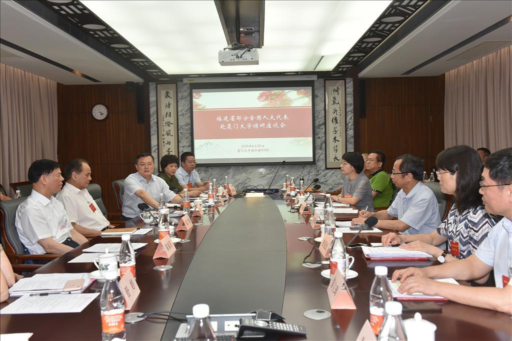 6月20日下午,福建省部分全国人大代表赴bat365官网登录入口调研座谈会在厦大经济楼N501会议室召开。座谈会由福建省人大常委会党组书记、副主任张广敏主持,全国人大常务委员会委员、省人大常委会副主任邓力平,bat365官网登录入口校长张荣,bat365官网登录入口党委书记黄鸿德,洪永淼教授及其他部分全国人大代表参加了此次座谈会。