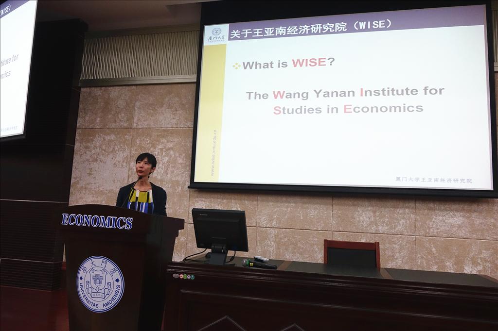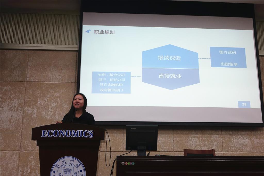 会上,WISE院长助理牛霖琳老师播放了宣传短片,介绍了WISE的一系列基本情况。随后,牛霖琳老师向学生和家长们介绍了两院的基本情况,并重点讲解了经济学本科国际化试点班的项目整体情况,从课程体系、海归班主任制、国际化师资、培养模式、学生交流、学生活动、学生获奖情况和毕业生培养成果等几个方面介绍了国际班的项目特色。 经济学国际班的学生代表们也上台发表了在国际班的学习体验感言,幽默风趣的演讲赢得了在场学生和家长的热烈掌声。