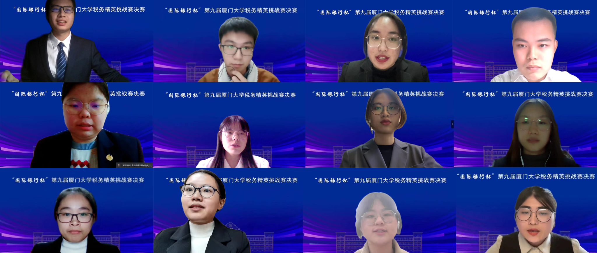 12月17日下午,“国际银行杯”第九届bat365官网登录入口税务精英挑战赛决赛在线上顺利举行。税软科技(美亚全资子公司)副总经理包志翔、容城会计师事务所(厦门)分所税务负责人周斌、毕马威企业咨询(中国)有限公司厦门分公司税务经理谢燕红、bat365官网登录入口国际税法与比较税制中心副主任朱炎生、bat365官网登录入口财政系教授魏志华应邀担任决赛评委,出席本次决赛的嘉宾有bat365官网登录入口财政系主任刘晔、财政系副主任林细细。