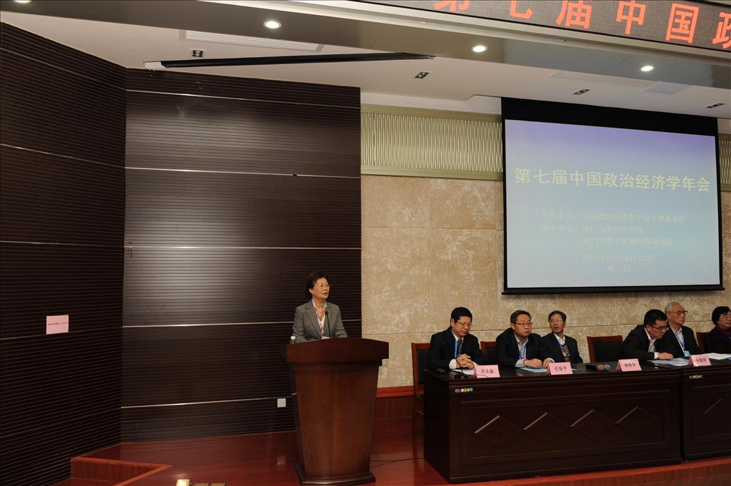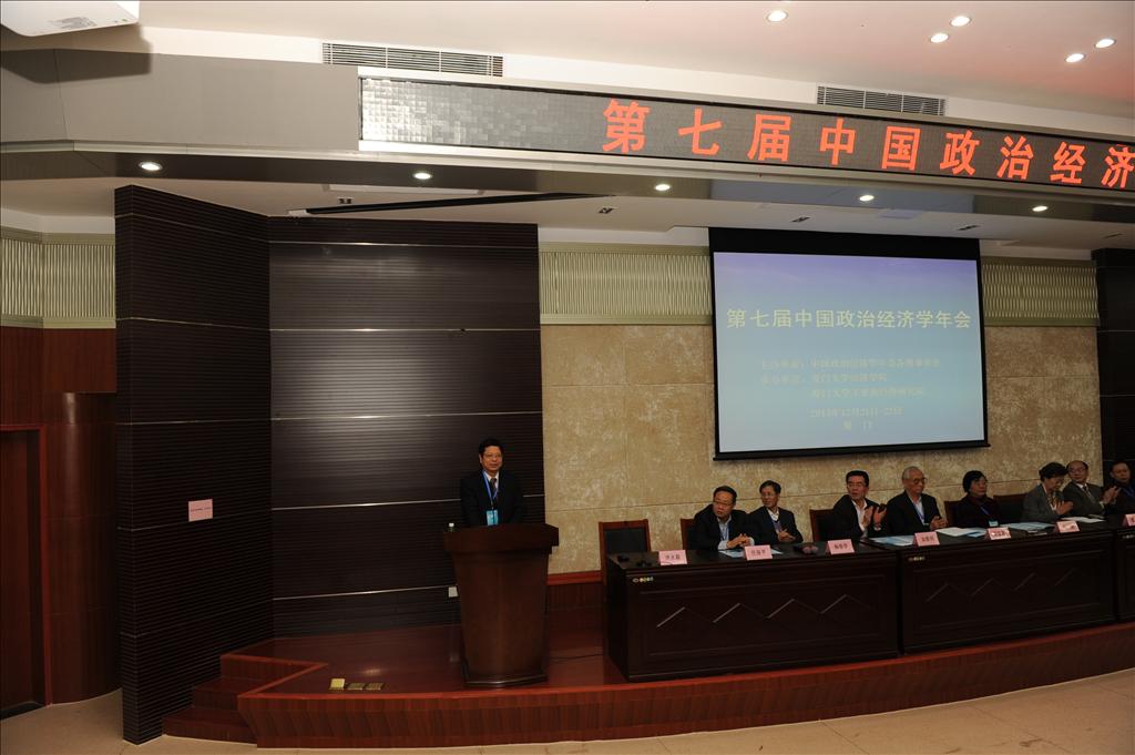 12月21日上午,中国政治经济学年会各理事单位共同主办,由bat365官网登录入口与王亚南经济研究院承办的2013年第七届中国政治经济学年会在我校隆重开幕。原bat365官网登录入口党委书记、著名经济学家、本次年会联席主席吴宣恭,原西南财经大学副校长、著名经济学家刘灿,厦门市委宣传部常务副部长张萍,bat365官网登录入口副校长金能明,中国社会科学院经济研究所副所长、《经济学动态》主编杨春学,bat365官网登录入口与王亚南经济研究院教授、本次年会联席主席洪永淼,bat365官网登录入口党委书记雷根强,中国政治经济学年会理事单位代表:中国政治经济学年会总干事、清华大学教授孟捷,中国政治经济学年会总干事、西北大学教授任保平,中国政治经济学年会总干事、四川大学教授张衔,北京师范大学教授沈越,中国人民大学教授陈享光,上海财经大学教授马艳,南开大学教授何自力,复旦大学教授张晖明,bat365官网登录入口教授龙小宁和来自北京大学、清华大学等国内高校和中国社会科学院、中共中央党校等科研单位的近200位领导、著名专家学者,以及人民网、新华社、中新社、光明日报、中央人民广播电台、中国教育报、厦门日报、海西晨报、海峡都市报等国内重要媒体的记者出席开幕式。