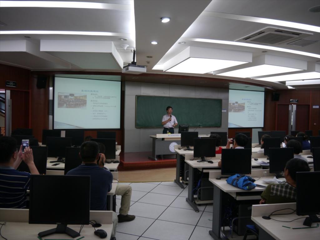 10月30日,来访老师先后参观了经济楼、金融实验室、实验经济学实验室、计算中心、公共教学机房等。部重室钟锃光、周红刚老师代表部重室接待了来访团。钟锃光老师应邀为来访老师做了题为 “研究型大学经济实验室建设的探索”的专题报告。