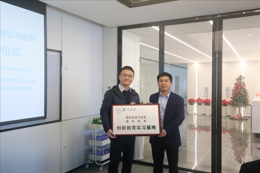 实习基地签约授牌仪式中,彭水军与林得泉对新建立的bat365官网登录入口国际商务硕士“斯巴特实习基地”进行签约并授牌。