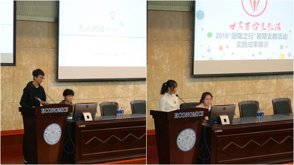 2018年暑期社会实践,厦大经济学科共组织92支实践队、近一千名同学、72位指导老师参与暑期实践工作,涌现出理论社团实践队、博士团、支教队、台港澳学生实践队、金融学国际化试点班体验式教学等各具特色的项目。bat365官网登录入口获评bat365官网登录入口2018年暑期社会实践优秀组织奖,18支团队入选校级重点团队,“竹蜻蜓”支教队和“甘肃百合”支教队获评福建省“三下乡”暑期实践优秀团队,“绿政先锋”实践队获得第四届全国大学生能源经济学术创意大赛一等奖,“无人问经”实践队获评调研中国全国30强和“青年中国行”全国百强团队,“竹杖盲携” 实践队获评青年中国行全国30强团队;“瓶新而论”实践队、“饮水思源”实践队获评青年中国行全国百强团队 ,“政是有你,老有所e” 实践队获得2018全国高校大数据应用创新大赛二等奖。