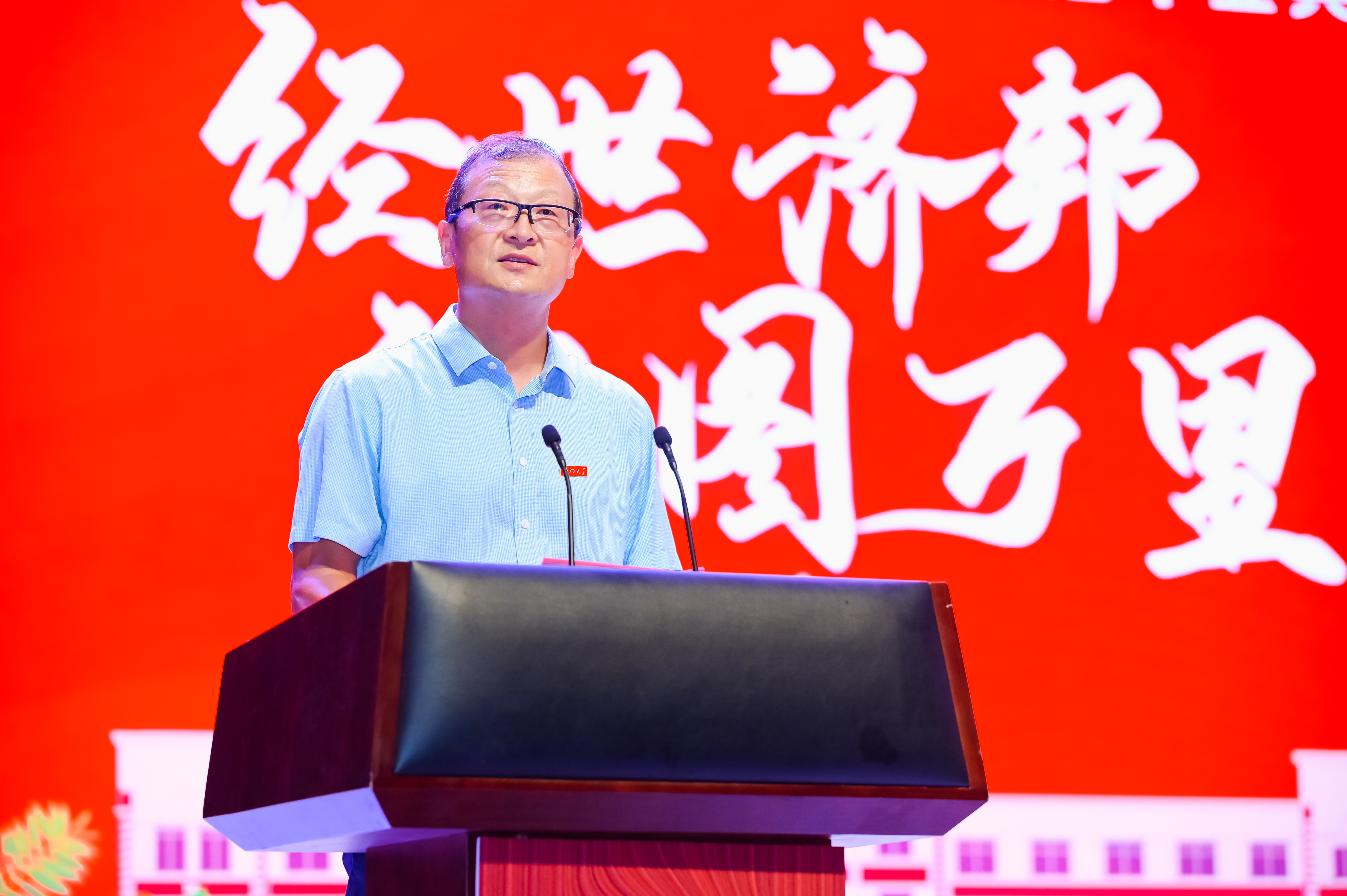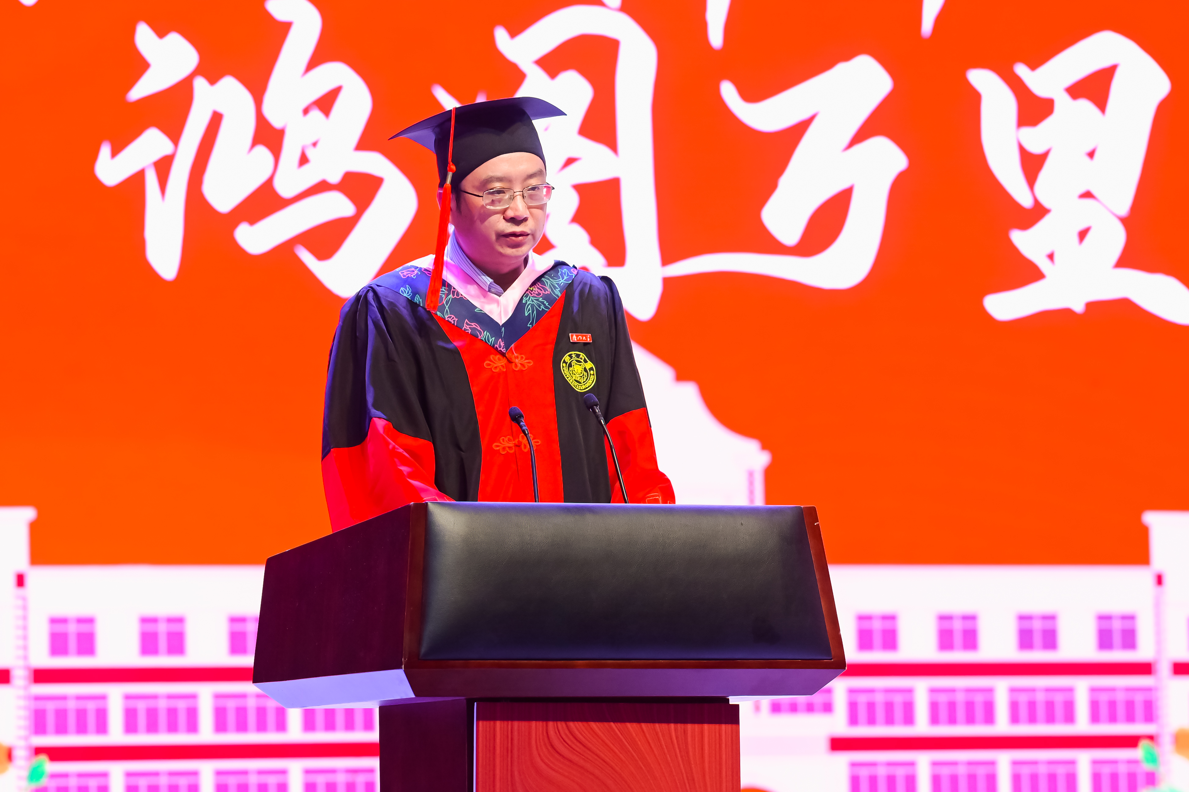 2023届本科生贺博钰、硕士生余一飞作为毕业生代表依次进行发言。他们回顾了自己的厦园时光以及在这几年里的成长和收获,表达了对学院领导、老师们无私奉献的敬意以及对学院、学校辛勤栽培的感谢,并提出了对未来的美好展望。他们动情地表示:“我们要主动承担起国家、民族和社会赋予的责任和使命,将梦想写进山河大海、写进蓝天草原,写在中华民族的这片土地上”“我们要肩负传递红色精神的使命,与时俱进,与党同心同行,为全面建设社会主义现代化国家、实现中华民族伟大复兴的中国梦作出新的更大贡献!”