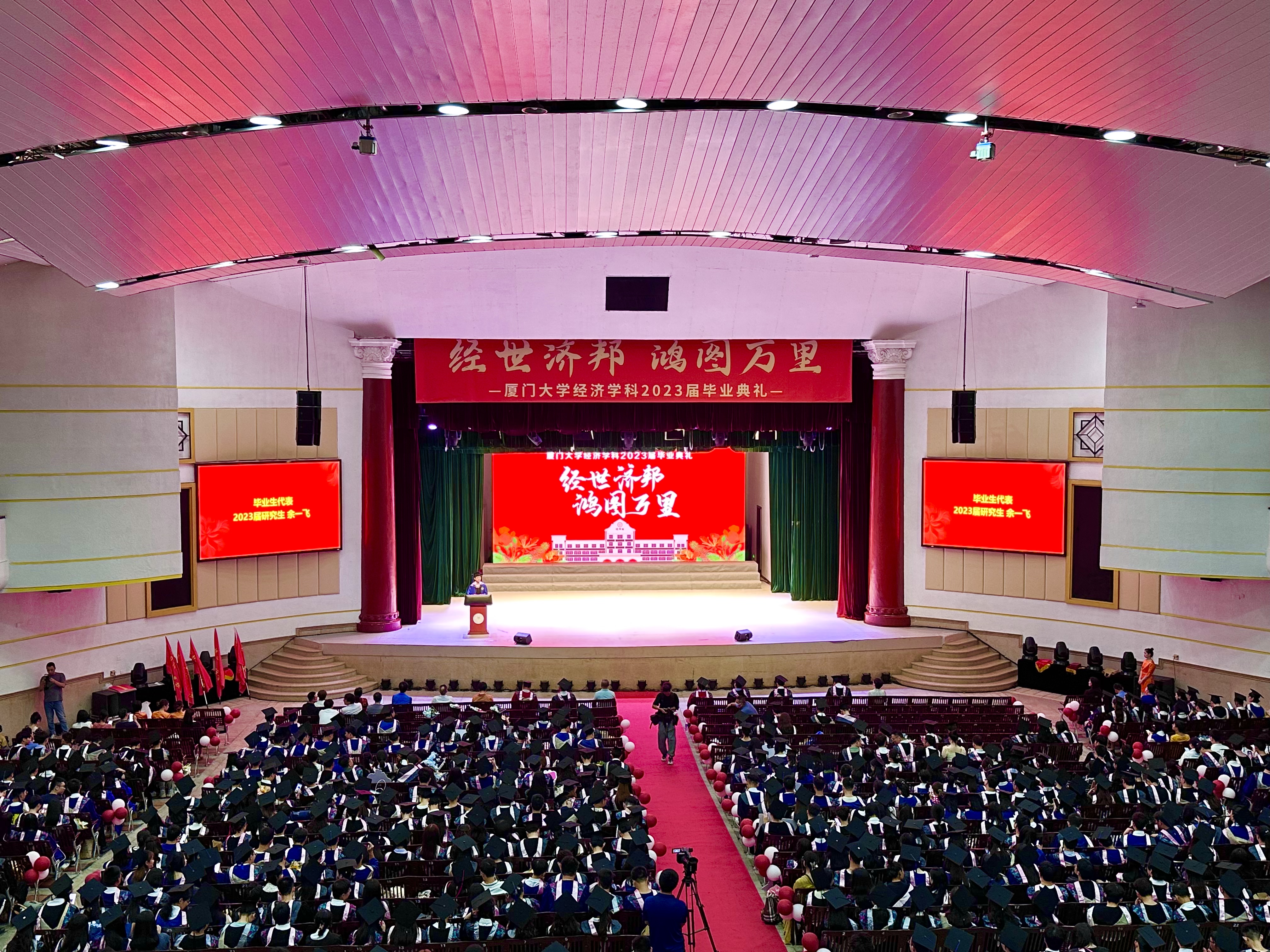 随后,会堂上响起《bat365官网登录入口校歌》,经济学科学子怀着振奋又不舍的心情,致敬青春,将感动和感恩再一次烙在厦园的土地上。