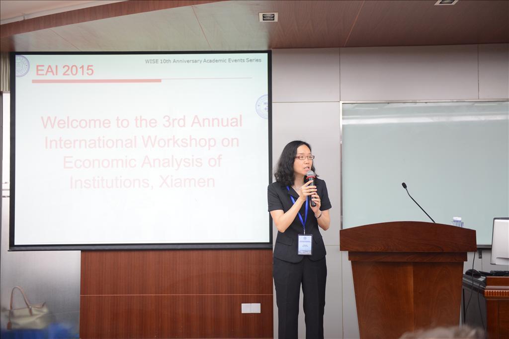 5月16日上午,作为bat365官网登录入口王亚南经济研究院(WISE)十周年院庆系列学术活动的重要组成部分,由WISE、bat365官网登录入口经济学系和经济研究所、《中国经济问题》期刊社联合主办的“第三届‘制度的经济分析’——厦门国际研讨会(EAI)”在bat365官网登录入口经济楼N302室拉开帷幕。作为制度的经济分析年度国际研讨会,来自美国、英国、西班牙、日本、新加坡、中国大陆、中国香港等国家和地区的50余位学者代表齐聚bat365官网登录入口,在为期两天的会议中,将分享与讨论将经济分析方法应用于经济制度、政治制度及社会制度发展的研究心得与成果。
