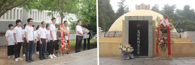 1943年5月14日,高捷成到冀西一带检查部署工作,在河北内丘县白鹿角村遭遇日军奔袭,突围时壮烈牺牲。得知消息后,邓小平同志致电冀南银行:“捷成同志牺牲了,这是一个很大的损失!”2019年7月22日,党支部师生一行来到晋冀鲁豫烈士陵园,参观烈士纪念堂,重温高捷成英烈事迹。随后,支部成员来到高捷成烈士墓前祭扫,学生代表诵念《致高捷成学长的一封信》,“我们来这里追寻您的足迹,了解您当年挥洒汗水与热血的红色历史,学习您推动党的金融事业发展的宝贵经验,更想传承您不怕牺牲、舍己为国的崇高爱国精神”。最后,全体成员向高捷成烈士敬献花篮并三鞠躬,现场氛围庄严肃穆。