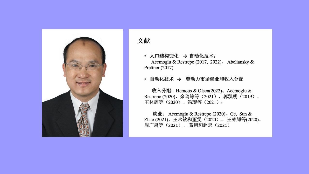 赵忠教授指出,随着我国受教育程度和寿命的增长,社会技术的进步也将对企业生产产生影响。研究发现人口老龄化促进了自动化技术的应用,虽然自动化技术进步可以抵消老龄化对总产出的负面作用、提高全人群消费水平,但却以加剧收入不平等为代价。为了更好地体现人口中的动态变化过程,赵忠教授引入了二期世代交替模型,并考虑了家庭部门、生产部门、自动化资本、劳动力市场、工资决定和政府部门的特点,不断校准模型并进行分析。在基本模型的基础上,赵忠教授还拓展讨论了公共政策,发现政府岗位补贴政策和收入补贴政策都有助于降低社会总失业率,小幅增加技能工资差距。二者相比较,岗位补贴政策对低技能劳动力的促进作用更强,且更能影响技能工资溢价。