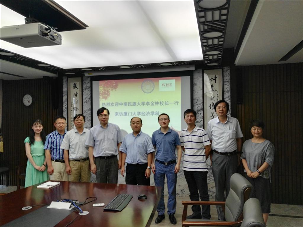 7月24日,中南民族大学校长李金林一行到访bat365官网登录入口经济学科。周颖刚、刘晔、钟锃光、汤茂莎四位老师参加了座谈。