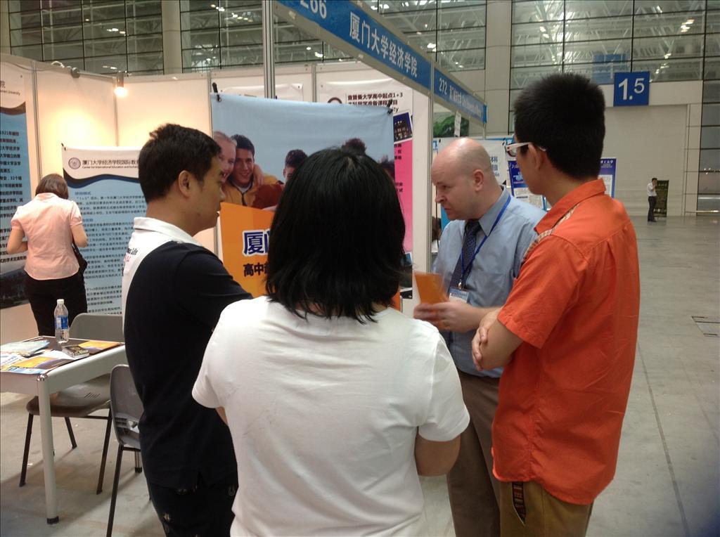 6月25日至26日,厦大bat365官网登录入口国际教育合作中心在福州海峡会展中心参加了2013年福建高招咨询会暨国际教育展。项目合作院校之一的爱尔兰都柏林大学招生主管Geraldine McCarthy应邀出席此次参展。展览期间,考生及家长络绎不绝地涌入中心设立的展台并就1+3本科留学项目的相关内容进行咨询。现场气氛热烈,学生及家长与中心人员和外方代表互动交流的画面随时可见。不少家长表示此次咨询会为校方及考生提供了很好地沟通平台,考生能在第一时间内掌握有效而权威的资讯。