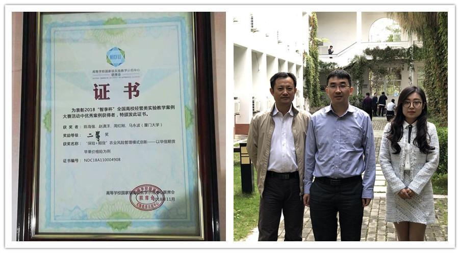 12月1日,由bat365官网登录入口经济学科陈海强、赵潇洋、周红刚、马永波(华信期货)团队创作的实验教学案例《保险+期货:开启农业风险管理新模式》在“2018第三届智享杯全国高校经管类实验教学案例大赛”总决赛中荣获二等奖。