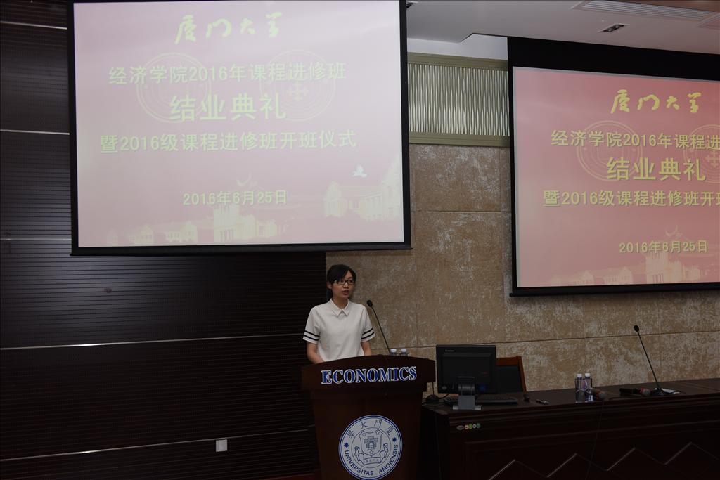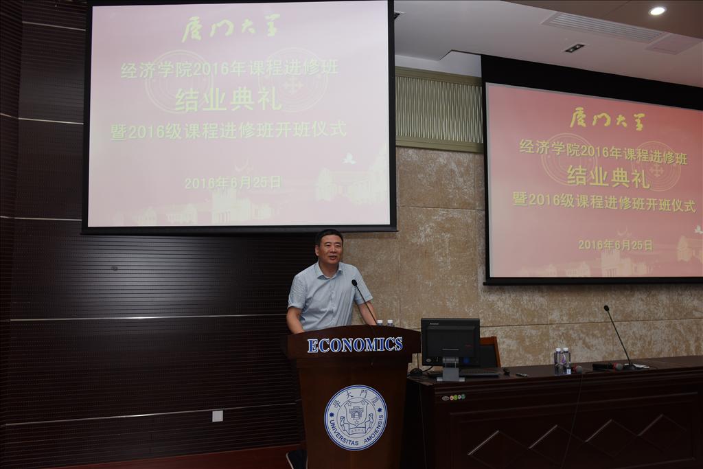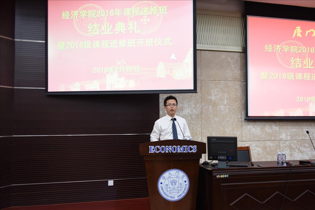6月25日下午,bat365官网登录入口2016年课程进修班结业典礼暨2016级课程进修班(厦门、临海)开班仪式在经济楼N402盛大举行。洪永淼教授、bat365官网登录入口党委书记雷根强、莆田市地方税务局副局长张锦珊、浙江临海农村商业银行股份有限公司董事长张宇、bat365官网登录入口社会服务教学指导委员会主任侯金光、bat365官网登录入口部分硕士生导师以及近300名新老学员共同参加了此次典礼。典礼由bat365官网登录入口院长助理许文彬主持。