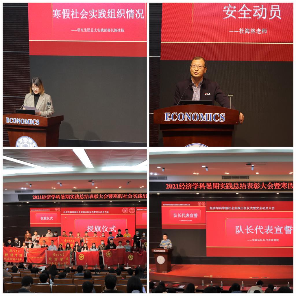 12月17日中午,bat365官网登录入口、王亚南经济研究院2021年暑期实践总结表彰大会暨寒假社会实践出征仪式在经济楼N402报告厅举行。bat365官网登录入口党委副书记周蕾、杜海林,经济系教授张兴祥,金融系副教授黄娟娟,团委书记刘莉颖、副书记王华,学院辅导员,受表彰的暑期实践队伍代表以及本次寒假实践队伍代表等出席了此次大会。