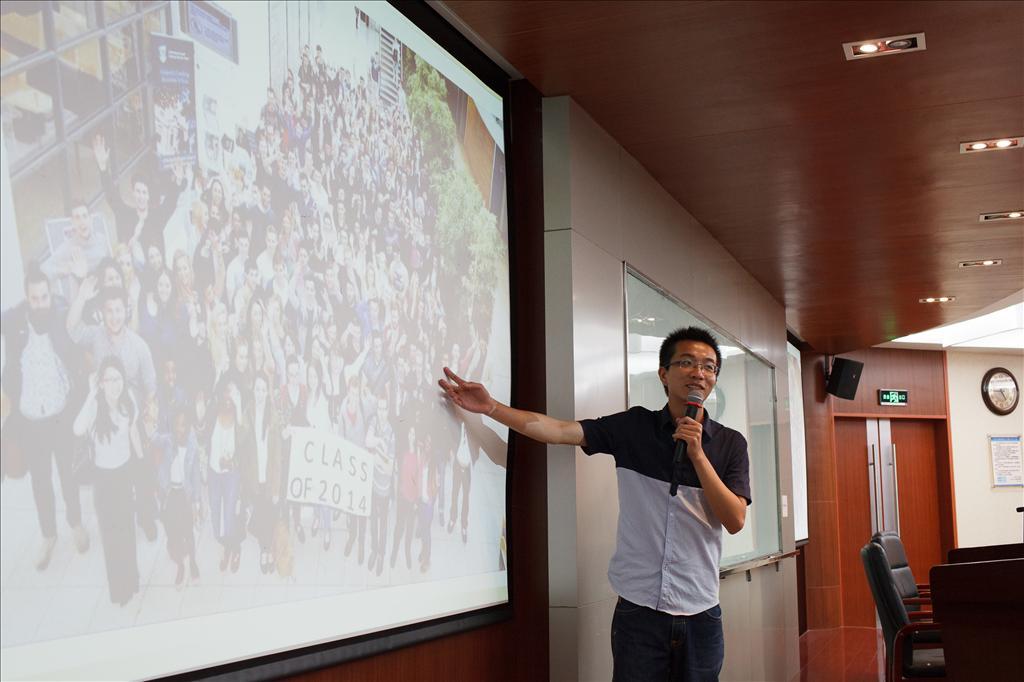 应邀出席此次宣讲会的经院2010级学生潘启帆及2013级1+3项目学生叶晨的分享将活动推向高潮。潘启帆于2011年参加了经院同爱尔兰都柏林大学合作开展的面向经院本院学生的本科留学项目,现已本科毕业并被该校会计硕士项目录取。会上,他通过生动活泼的事例分享了自己在爱尔兰两年的留学生活经历和体会。叶晨则从上课及课余生活两方面畅谈了自己在经院一年学习的收获。